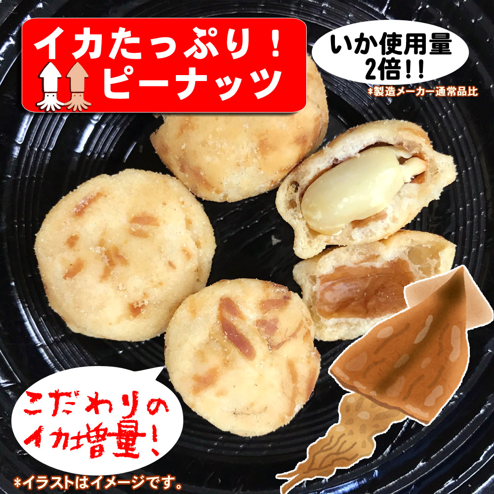 元来、おつまみとして親しまれているイカピーナツですが、この製品はイカの量を2倍に
